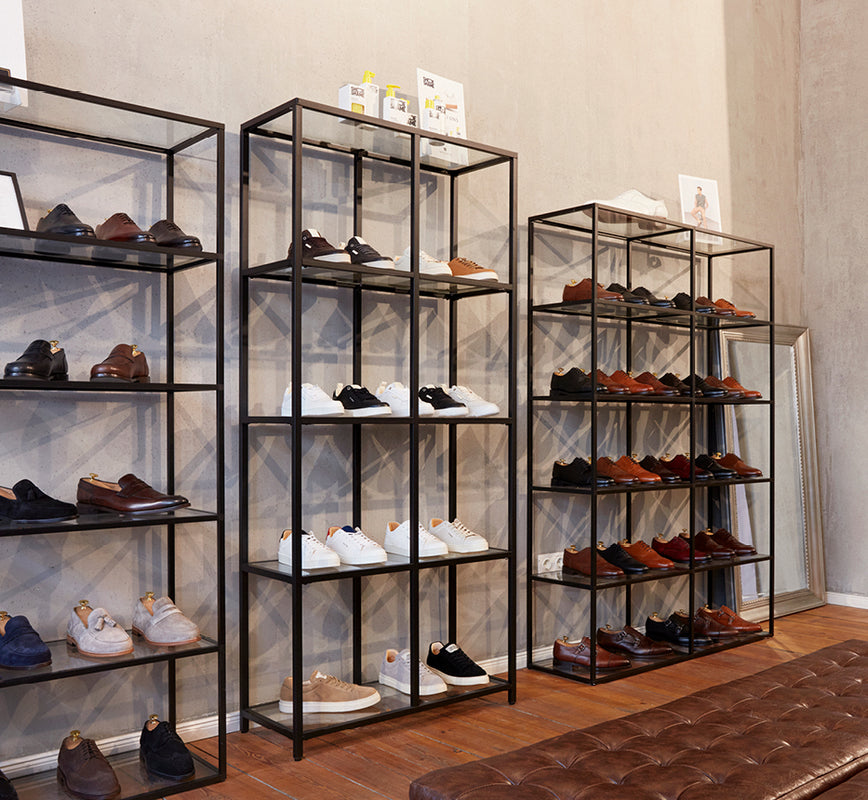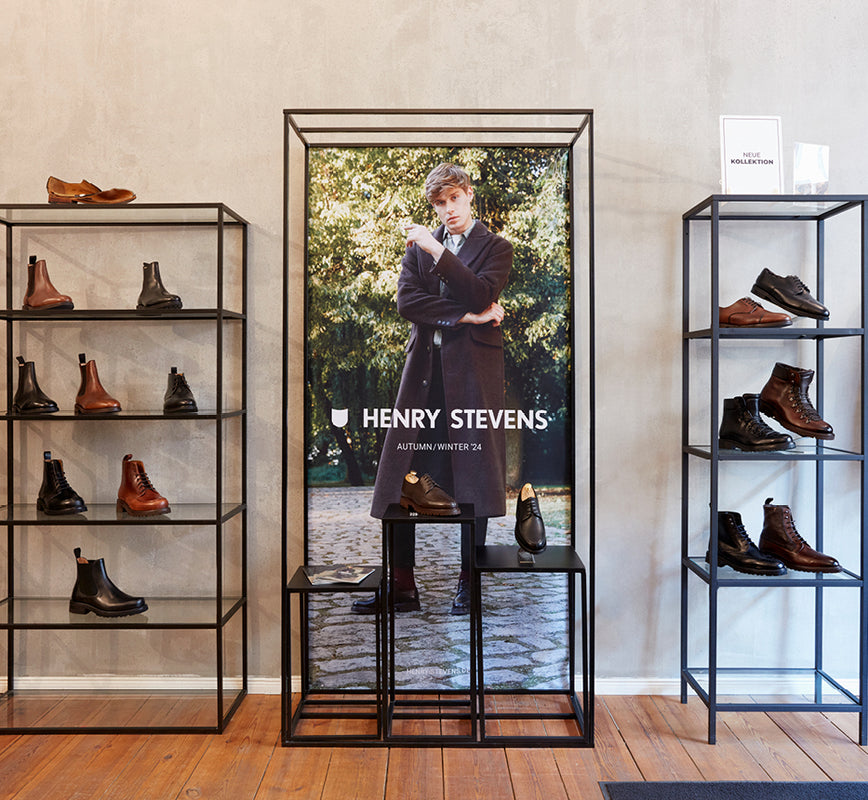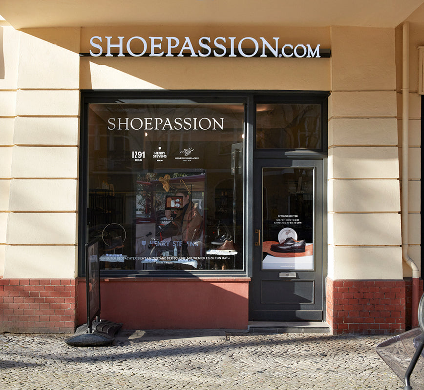 Besuchen Sie unser Shoepassion Ladengeschäft in Berlin-Charlottenburg und lernen Sie die abwechslungsreichen Schuhkollektionen unserer Eigenmarken Henry Stevens, N91 sowie Heinrich Dinkelacker aus der Nähe kennen.