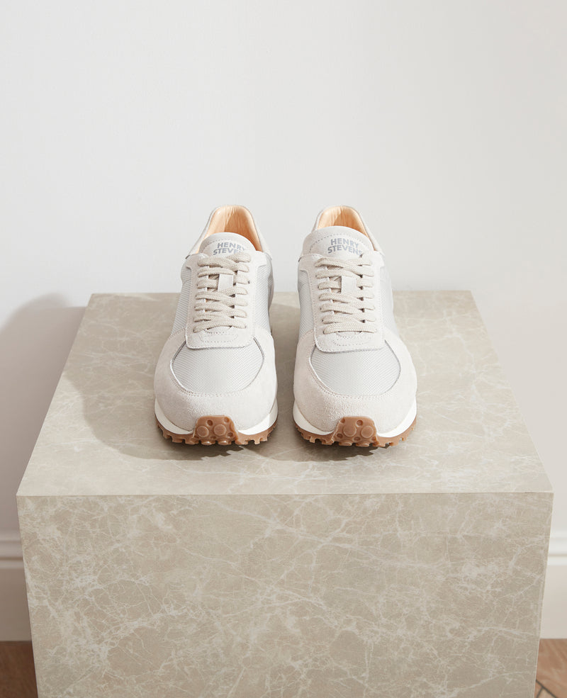 Gefertigt aus feinstem Kalbsvelours und sportlichem Canvas, spiegelt dieser neue Runner urbane Leichtigkeit wider. Die leichten Grautöne verleihen ihm ein unaufdringliches und zu jedem Anlass passendes Flair. Gemacht für alle, die ihren eigenen Spuren hinterlassen und stets Stil bewahren.